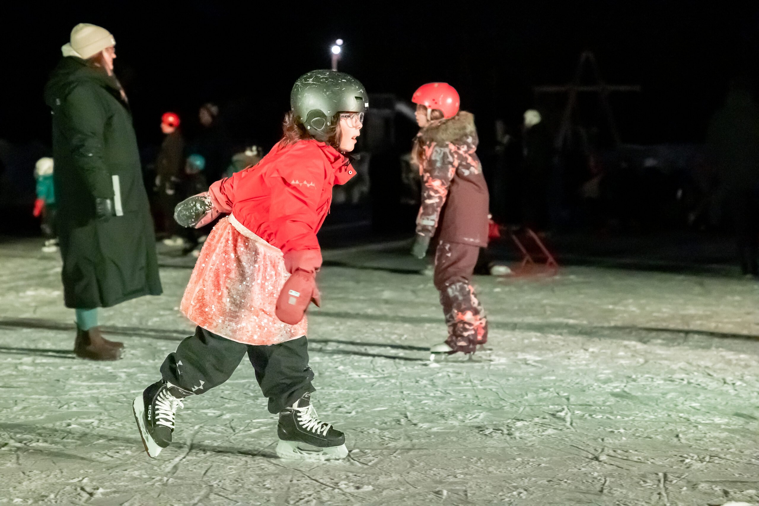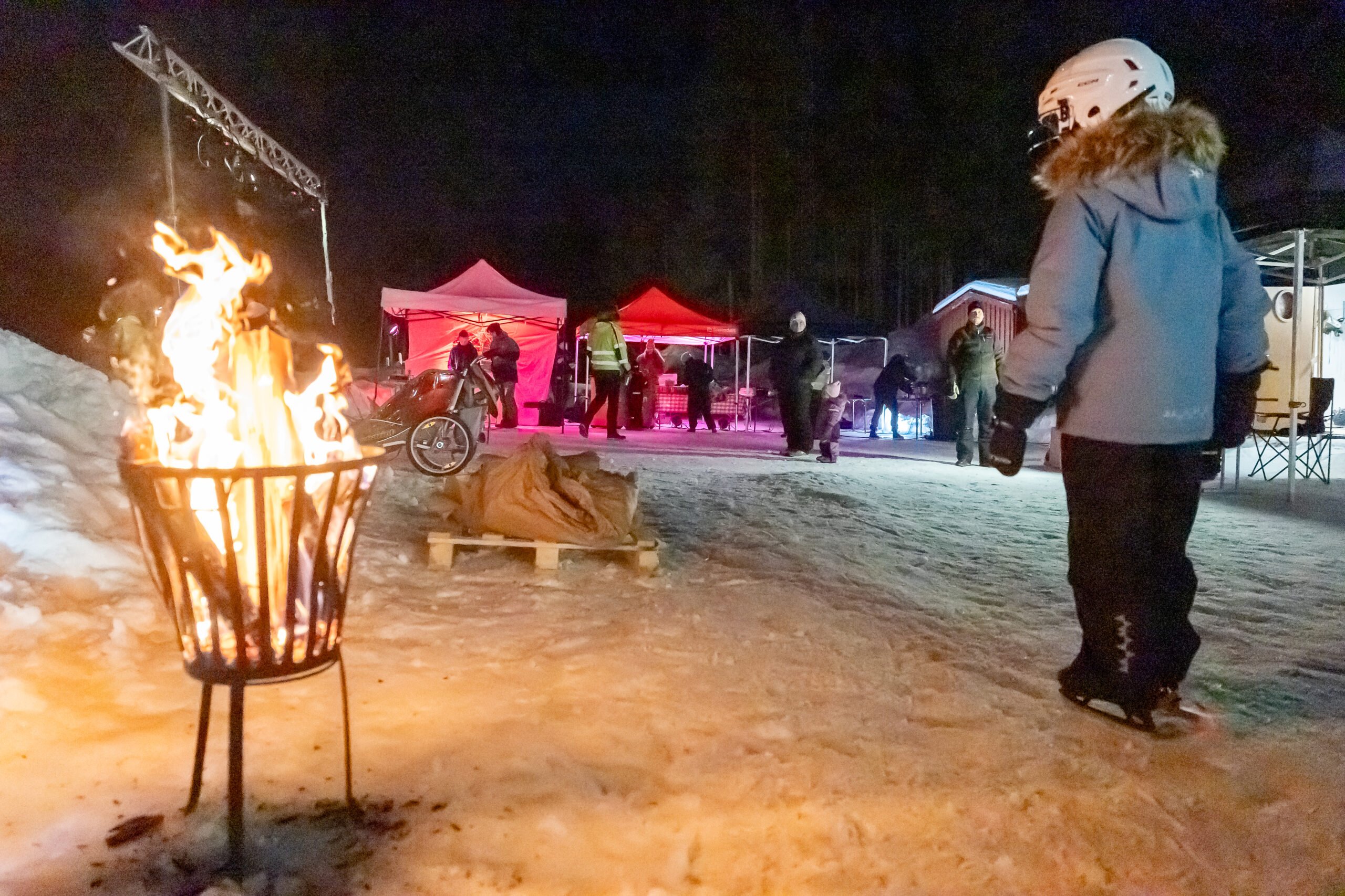 Inramningen kunde inte ha blivit bättre – någon enstaka minusgrad, korgar med sprakande eld, möjlighet att få låna (och även få skridskorna slipade) och en kopp varm choklad på det.