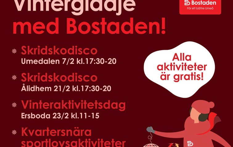 Söndag den 23 februari klockan 11-15 bjuder Bostaden in både hyresgäster och Umeåbor till en rolig vinterdag för hela familjen, vid Ersängsskolan på Ersboda, tillsamma...